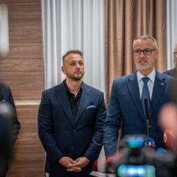 Štátny tajomník MV SR Michal Kaliňák, minister vnútra SR Matúš Šutaj Eštok, predseda NR SR Richard Raši a primátor mesta Fiľakovo Attila Agócs/MV SR